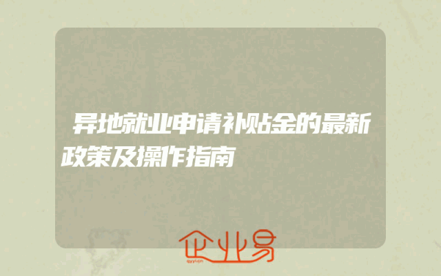 - 异地就业申请补贴金的最新政策及操作指南一、最新异地就业补贴政策概述在我国经济不断发展的背景下,为了鼓励人才流动,推动异地就业,最新的异地就业补贴政策已经出台。该政策针对在异地就业并符合条件的个人和企业,提供一定的补贴,旨在减轻就业成本,促进