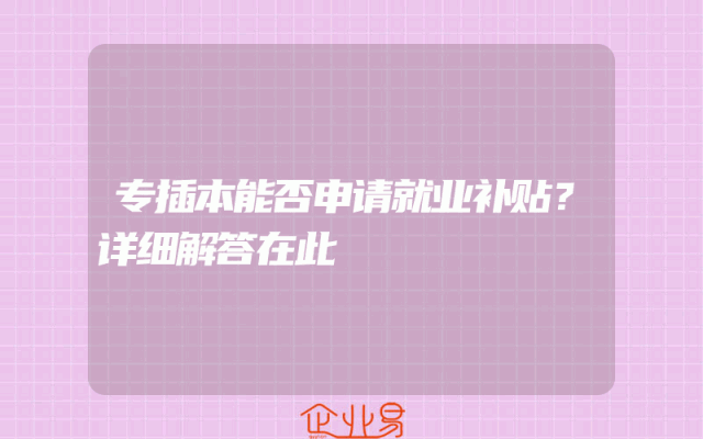 - 专插本能否申请就业补贴?详细解答在此
