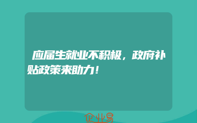 - 应届生就业不积极,政府补贴政策来助力!