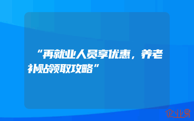 - “再就业人员享优惠,养老补贴领取攻略”