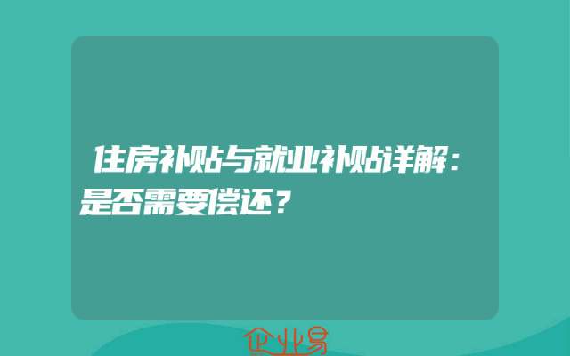 - 住房补贴与就业补贴详解:是否需要偿还?
