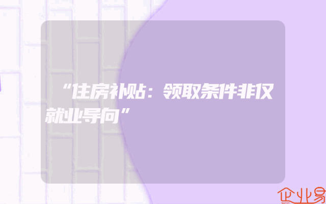 - “住房补贴:领取条件非仅就业导向”