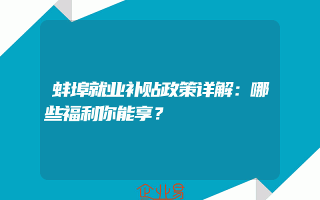 - 蚌埠就业补贴政策详解:哪些福利你能享?