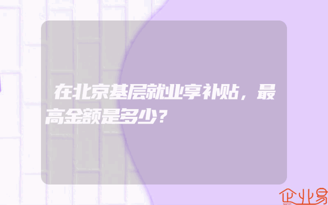 - 在北京基层就业享补贴,最高金额是多少?