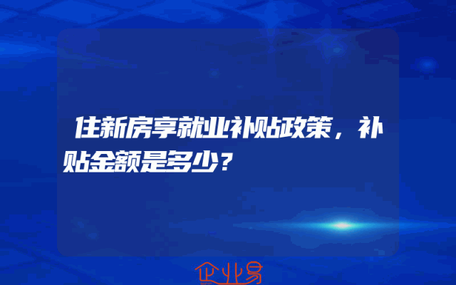 - 住新房享就业补贴政策,补贴金额是多少?