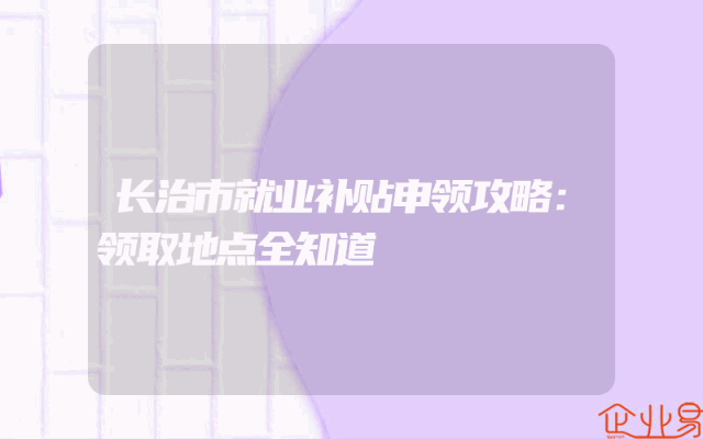 - 长治市就业补贴申领攻略:领取地点全知道