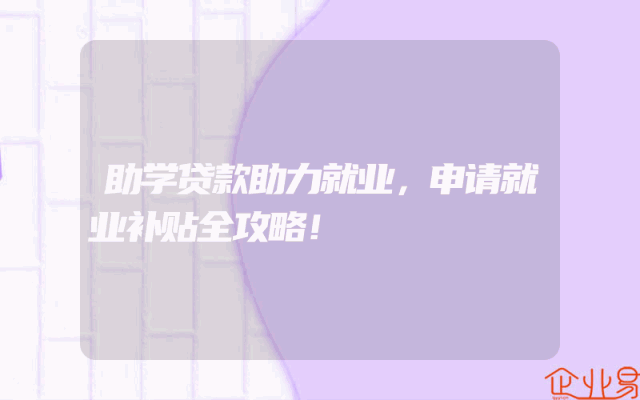 - 助学贷款助力就业,申请就业补贴全攻略!