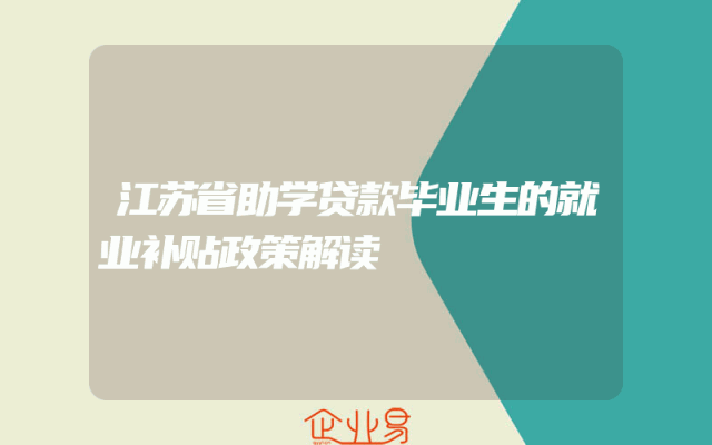 - 江苏省助学贷款毕业生的就业补贴政策解读
