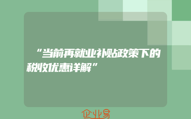 - 当前再就业补贴政策下的税收优惠详解一、再就业补贴政策概述在当前经济形势下,为了促进就业稳定和社会和谐,国家推出了一系列的再就业补贴政策。这些政策不仅为失业人员提供了再就业的机会,同时也为企业招聘新员工提供了支持和激励。税收优惠作为其中的一项