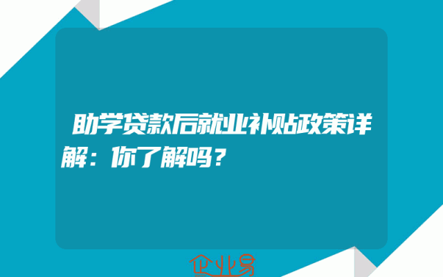 - 助学贷款后就业补贴政策详解:你了解吗?