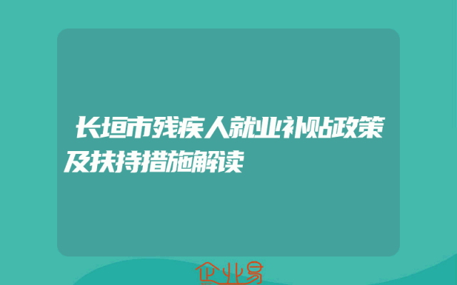 - 长垣市残疾人就业补贴政策及扶持措施解读