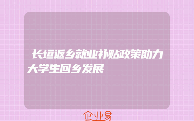 - 长垣返乡就业补贴政策助力大学生回乡发展