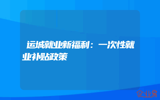 - 运城就业新福利:一次性就业补贴政策