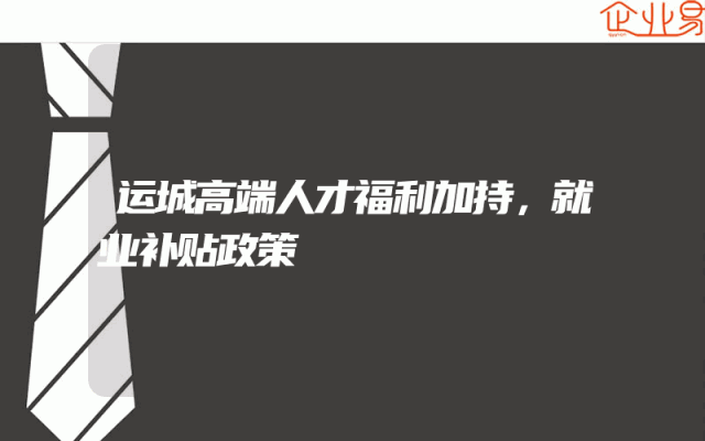 - 运城高端人才福利加持,就业补贴政策