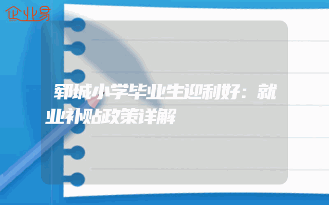 - 郓城小学毕业生迎利好:就业补贴政策详解
