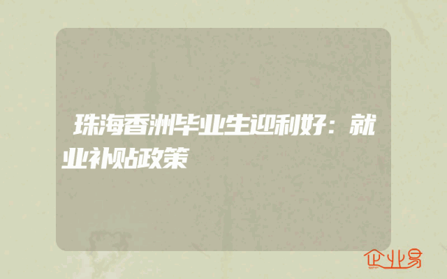 - 珠海香洲毕业生迎利好:就业补贴政策