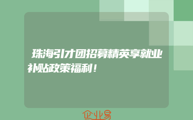 - 珠海引才团招募精英享就业补贴政策福利珠海引才团启动,诚邀各界精英共谋发展随着珠海经济的持续高速发展,珠海引才团正式启动了招募精英人才的计划。珠海作为珠江三角洲的中心城市之一,一直致力于打造人才高地,为各类人才提供良好的发展机会和生活环境。就