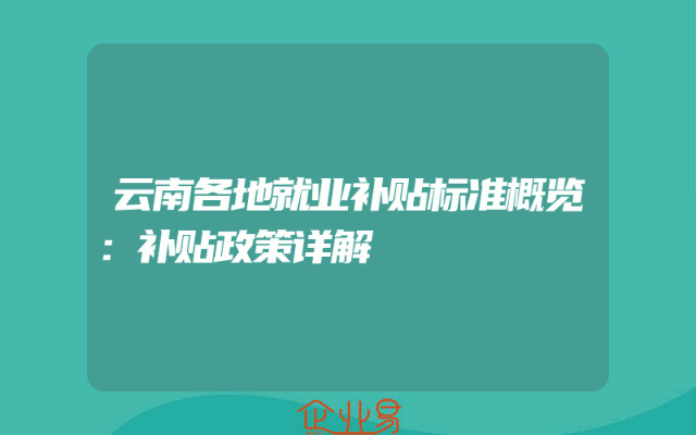 - 云南就业补贴金额揭秘:最高可获得多少?