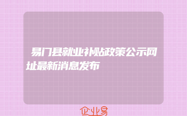 - 易门县就业补贴政策公示网址最新消息发布一、政策更新与公示近日,易门县政府更新了就业补贴政策,并公示了最新的政策信息。这一政策更新旨在鼓励更多的本地居民积极参与就业,提高居民的生活水平。二、政策亮点与主要内容新政策包含多个亮点内容,主要面向新