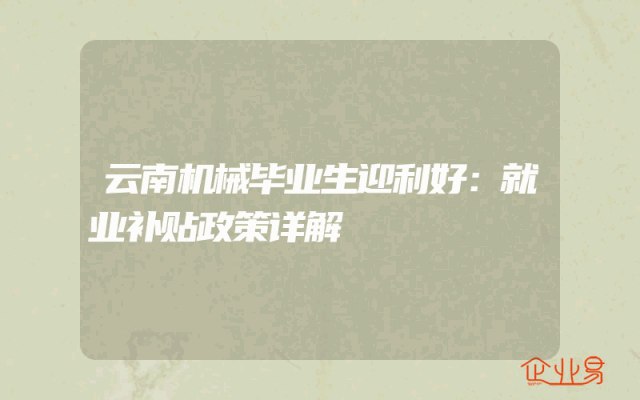 - 云南机械毕业生迎利好:就业补贴政策详解
