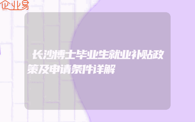- 长沙博士毕业生就业补贴政策及申请条件详解