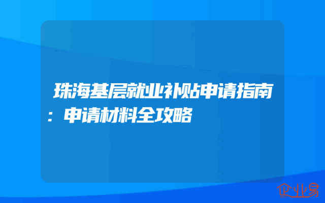 - 珠海基层就业补贴申请指南:申请材料全攻略