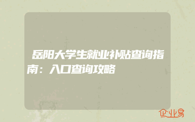 - 岳阳大学生就业补贴查询指南:入口查询攻略
