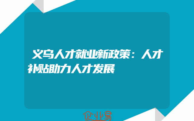 - 义乌人才就业新政策:人才补贴助力人才发展