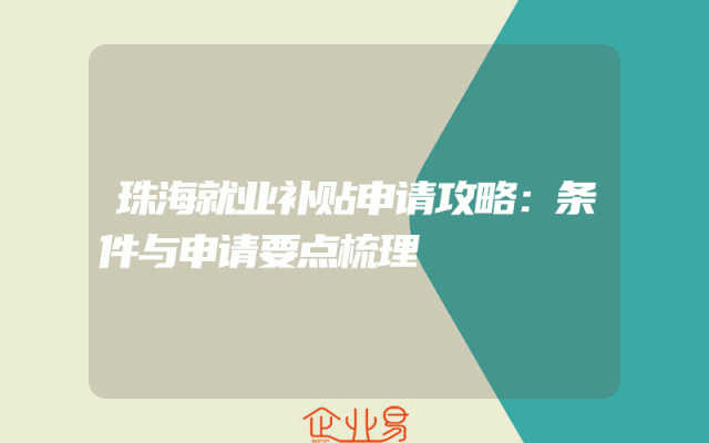 - 珠海就业补贴申请攻略:条件与申请要点梳理