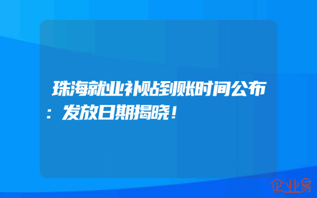 - 珠海就业补贴到账时间公布:发放日期揭晓!