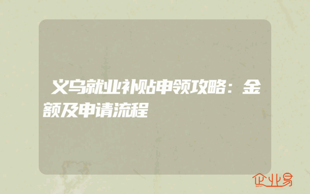- 义乌就业补贴申领攻略:金额及申请流程