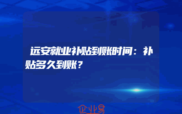 - 远安就业补贴到账时间:补贴多久到账?