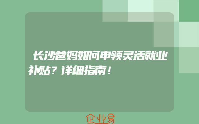 - 长沙爸妈如何申领灵活就业补贴?详细指南!