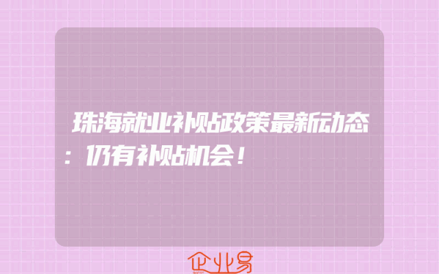 - 珠海就业补贴政策最新动态:仍有补贴机会!