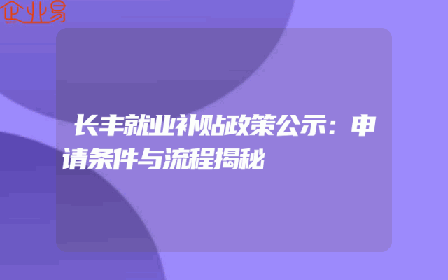 - 长丰就业补贴政策公示:申请条件与流程揭秘