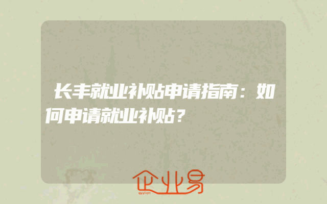 - 长丰就业补贴申请指南:如何申请就业补贴?