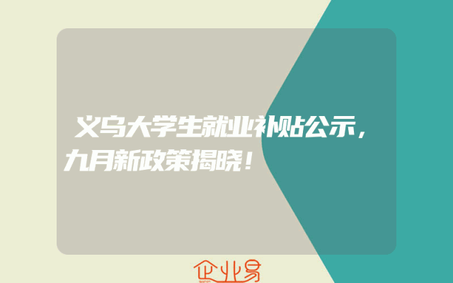 - 义乌大学生就业补贴公示,九月新政策揭晓!