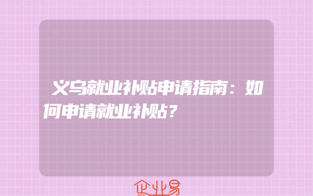 - 义乌就业补贴申请指南:如何申请就业补贴?