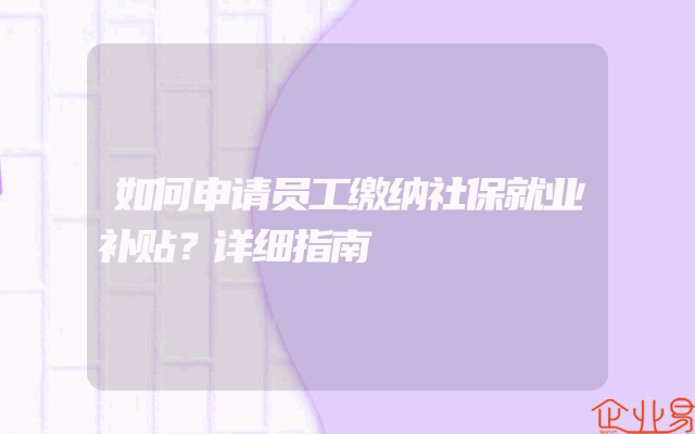 - 如何申请员工缴纳社保就业补贴?详细指南