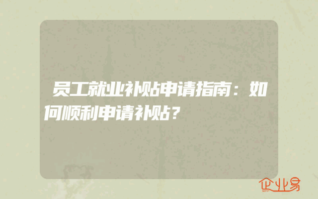 - 员工就业补贴申请指南:如何顺利申请补贴?