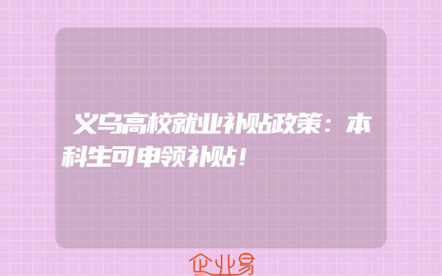 - 义乌高校就业补贴政策:本科生可申领补贴!