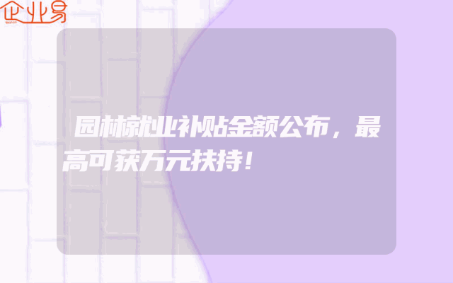 - 园林就业补贴金额公布,最高可获万元扶持!