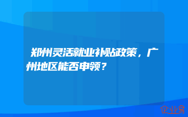 - 郑州灵活就业补贴政策,广州地区能否申领?