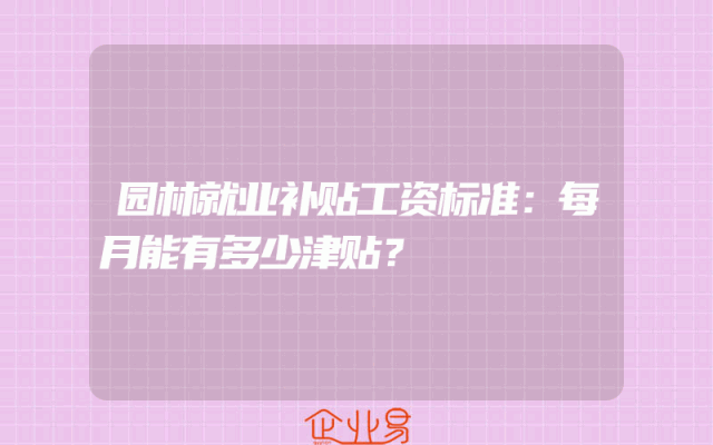 - 园林就业补贴工资标准:每月能有多少津贴?