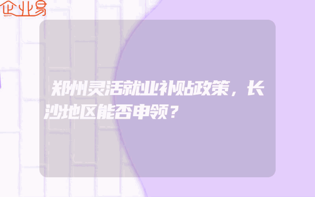- 郑州灵活就业补贴政策,长沙地区能否申领?