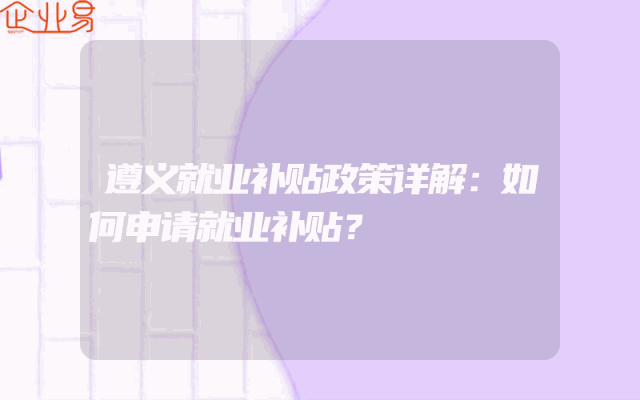 - 遵义就业补贴政策详解:如何申请就业补贴?
