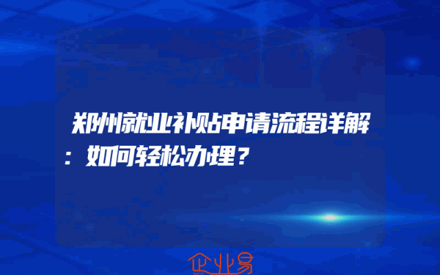 - 郑州就业补贴申请流程详解:如何轻松办理?