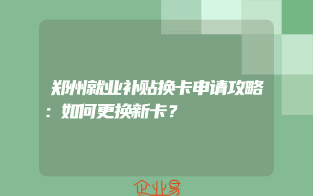 - 郑州就业补贴换卡申请攻略:如何更换新卡?