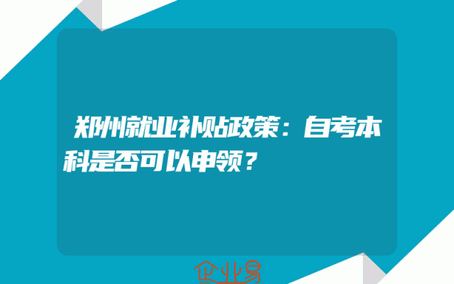 - 郑州就业补贴政策:自考本科是否可以申领?