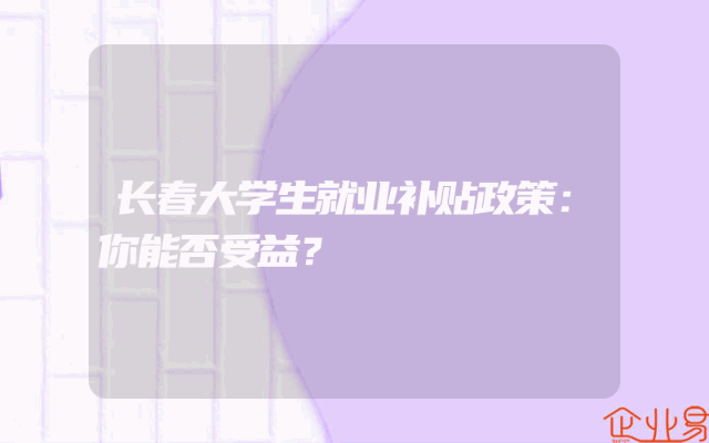 - 长春大学生就业补贴政策:你能否受益?